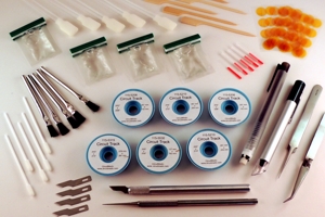 This kit includes epoxies and color agents to repair base board material, solder mask, and coatings. The epoxy is precisely measured in two-compartment plastic packages, so there’s no measuring.