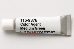 Color Agent is a one-part, air-drying, semi-paste ink commonly used for printing on hard surfaces, including circuit board base materials. Color Agent contains petroleum distillates but is not considered hazardous and does not require special labeling. It can be used to tint the color of epoxy used for solder mask repair or circuit base board repair. Color agents may also be applied directly to the circuit board surface for color matching.