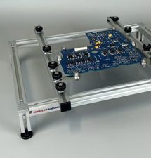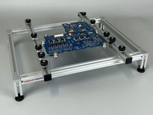 This sturdy circuit board holder supports PCBs for rework, drilling, pad repair, and precision positioning. Dual slide rails provide adjustment for holding assembled circuit boards up to 12″ (300/ mm) wide.