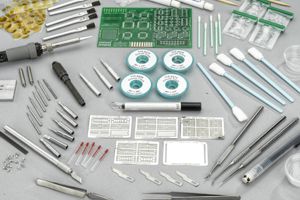 This kit includes the tools and materials needed to reliably repair or replace damaged lands, surface mount, and BGA pads.