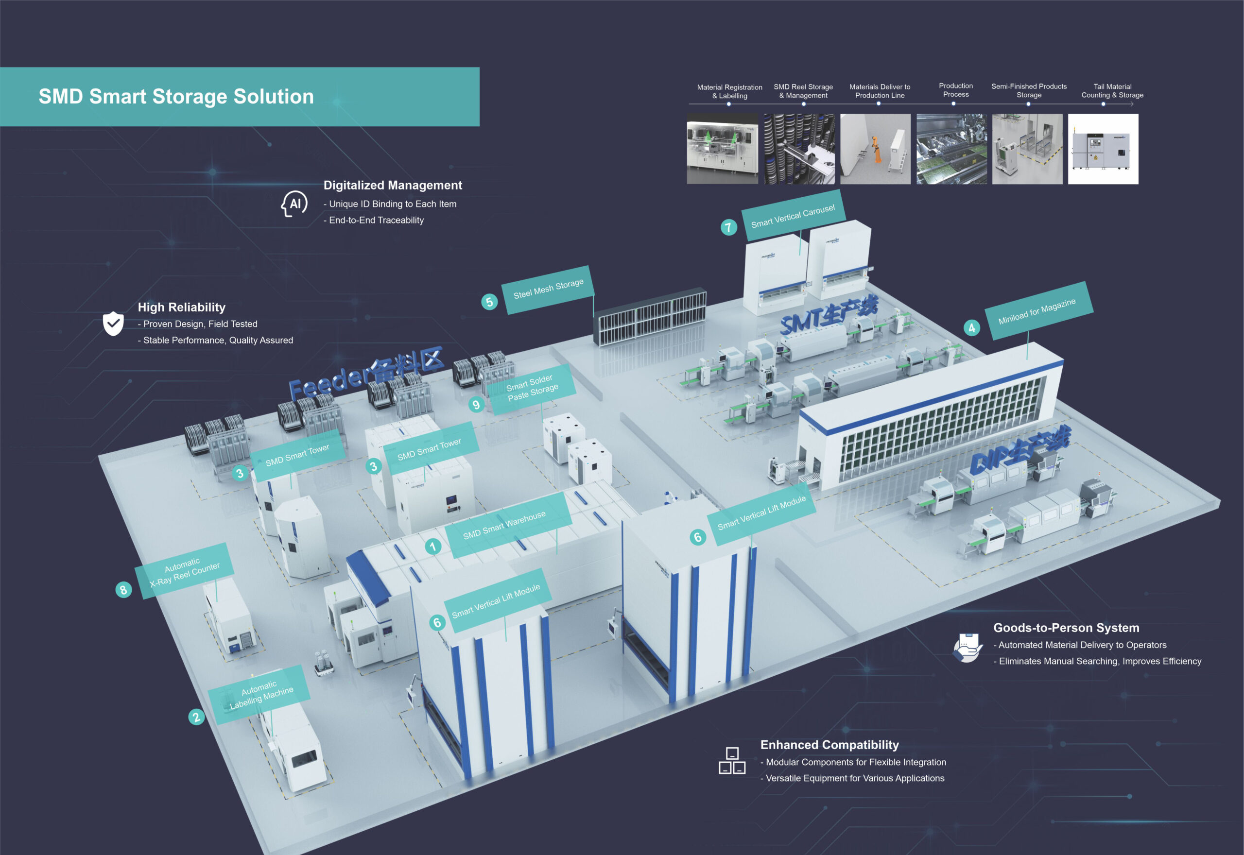 Compatible with various SMD components and material types. Features modular design for easy expansion, adapting to increased storage needs.